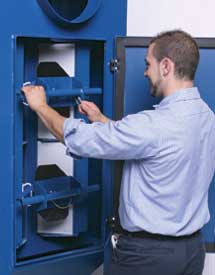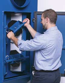 Torit PowerCore TG過濾元件拆裝容易,只需要打開檢修門,不需要任何工具, 擰開旋轉(zhuǎn)式鎖扣,一個人就能輕松取出過濾元件,完成更換。PowerCore過濾元件重量輕,即使在最終更換時,一般也不會超過22.7kg (50磅), 符合美國OSHA職業(yè)安全與健康管理局規(guī)定的人力提舉限值。