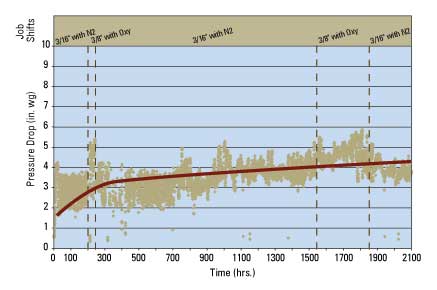 想一想,如果你今天切割3.5mm厚的鋼板,但明天卻換成6mm厚, 這樣的轉(zhuǎn)變會令粉塵量大大增加。對于PowerCore TG而言,這絕對不是問題,因為“ZERO-TURN”零轉(zhuǎn)向脈沖噴吹系統(tǒng),令PowerCore過濾元件的清灰效能比傳統(tǒng)濾筒式除塵器更為有效。而且能一直維持恒定的壓差運行,令過濾元件的使用壽命更長。